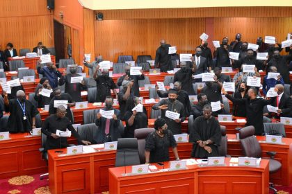 Parliamentary proceedings were brought to a standstill on Tuesday, December 9, 2025, as Minority members, dressed in black, staged a…