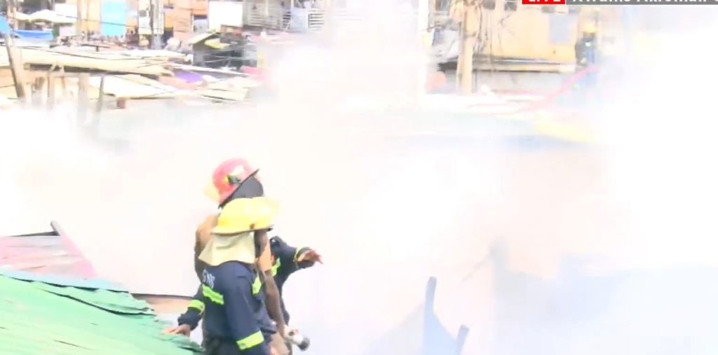 Personnel from the Ghana National Fire Service (GNFS) who were on-site battled to contain the flames and prevent them from spreading to adjacent commercial and transport structures.