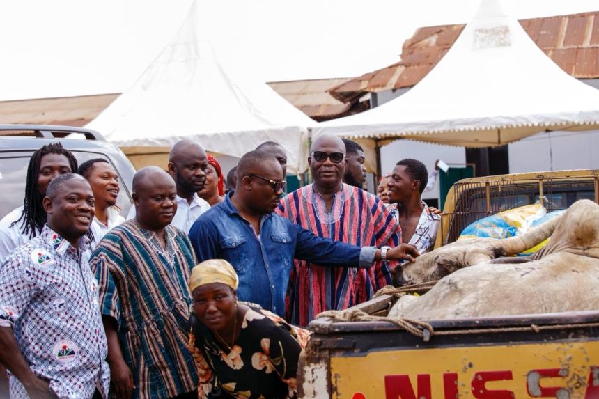 The donation included 20 bags of rice, gallons of cooking oil, cattle, assorted alcoholic and non-alcoholic beverages, and a cash amount of ₵10,000 to support activities marking the festival.