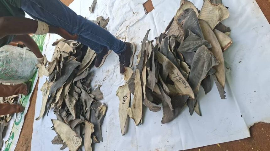 The fins, packed in 14 wrapped jute bags, popularly known as “Ghana Must Go”, are believed to have a street value of between USD300,000 and USD 400,000, with Mauritania as its final destination.