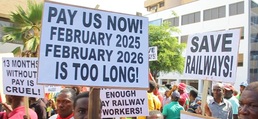 Workers of the Ghana Railway Company Limited (GRCL) have stormed the Ministry of Transport in a heated protest, demanding the immediate release of funds to settle 13 months of salary arrears.