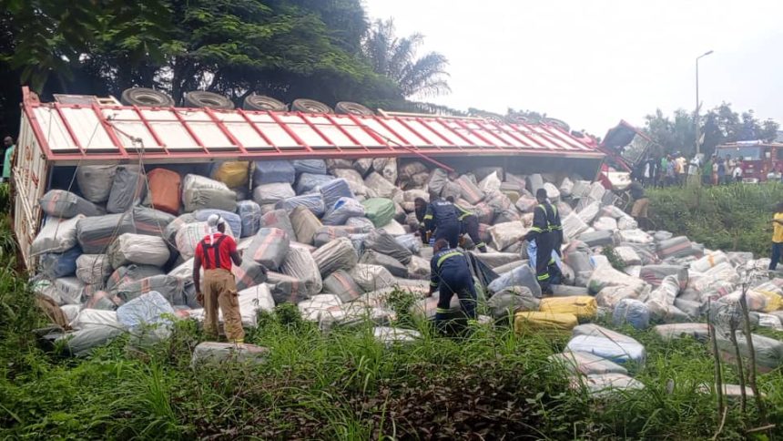 The truck with the registration AW 3475 – 21, had loaded bales of assorted second-hand items from Accra and was headed for Abidjan in Cote d’Ivoire.