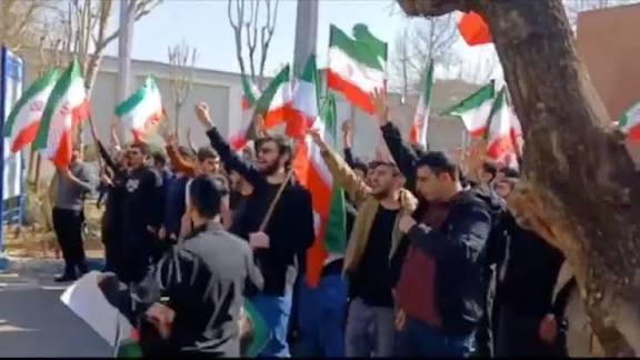 The BBC has verified footage of demonstrators marching on the campus of the Sharif University of Technology in the capital Tehran on Saturday. They were later seen scuffling with government supporters.