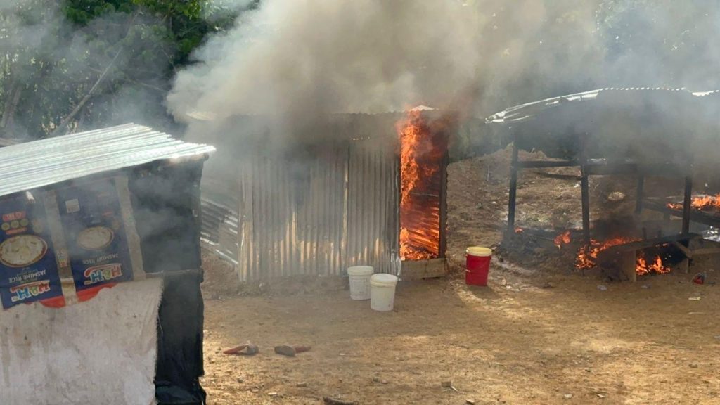 A wooden structure about 45 metres from the site was searched, revealing the weapons and ammunition. The task force later set the structure ablaze.