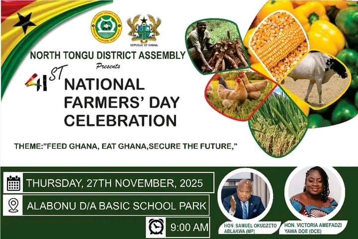 The North Tongu District will on Thursday, November 27, 2025, celebrate the 41st National Farmers’ Day, with a district durbar scheduled to take place at the Alabonu D/A Basic School Park.