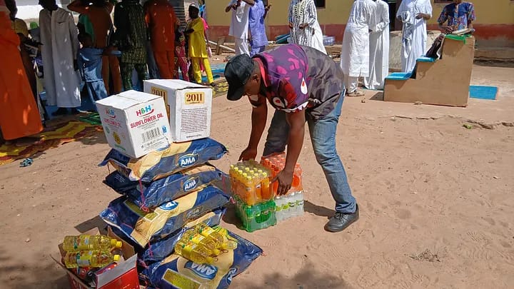 The first phase of the distribution was held at the McDan Sports Complex in Sege, where a large number of Muslim faithful gathered, while subsequent distributions were carried out in other communities.