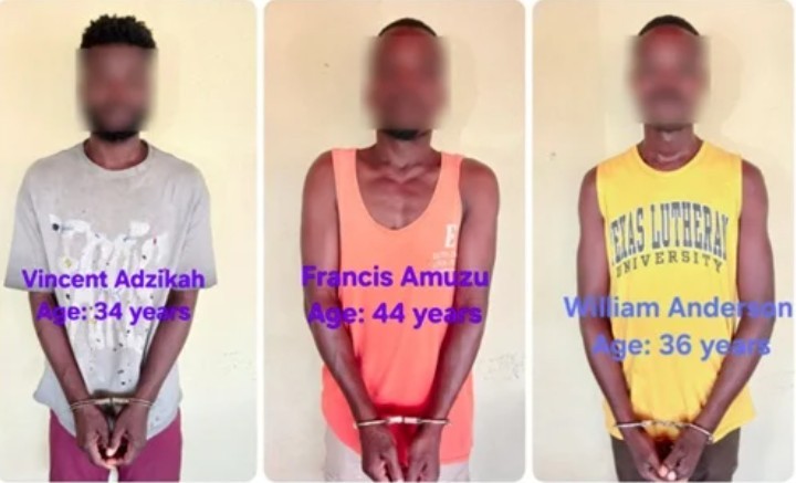 The suspects, Francis Amuzu, 44, William Adison, 36, and Vincent Adzikah, 34, are currently in custody at the Sakumono District Police Command, assisting with investigations.